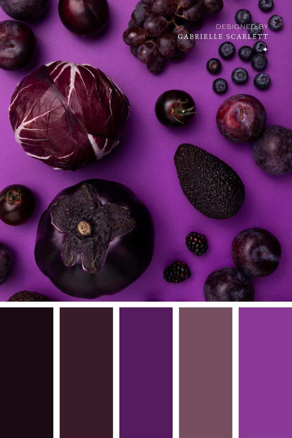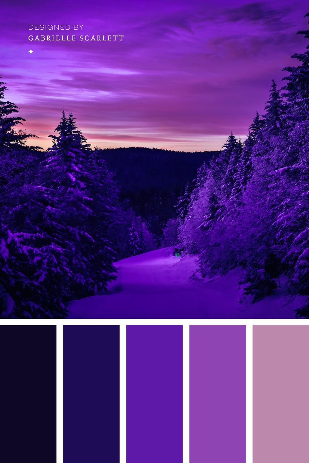 If your purple palette is light, and airy, and uplifting, keep things light, and airy, and uplifting. If the purple colour palette you’re using is deep, and moody, and ethereal… same deal. Stick within the mood that is curated by the colours you’ve selected.